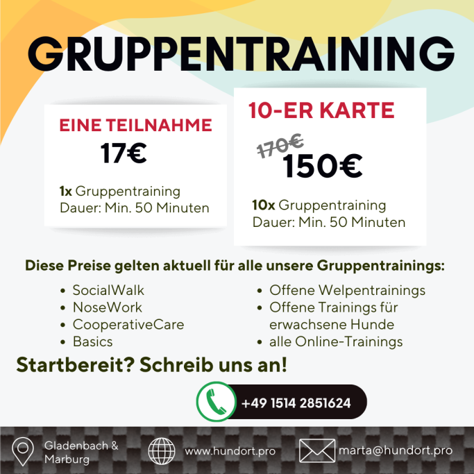 Unsere Hundeschule behält sich vor die Rabatt-Aktionen jederzeit zu beenden oder zu verändern.